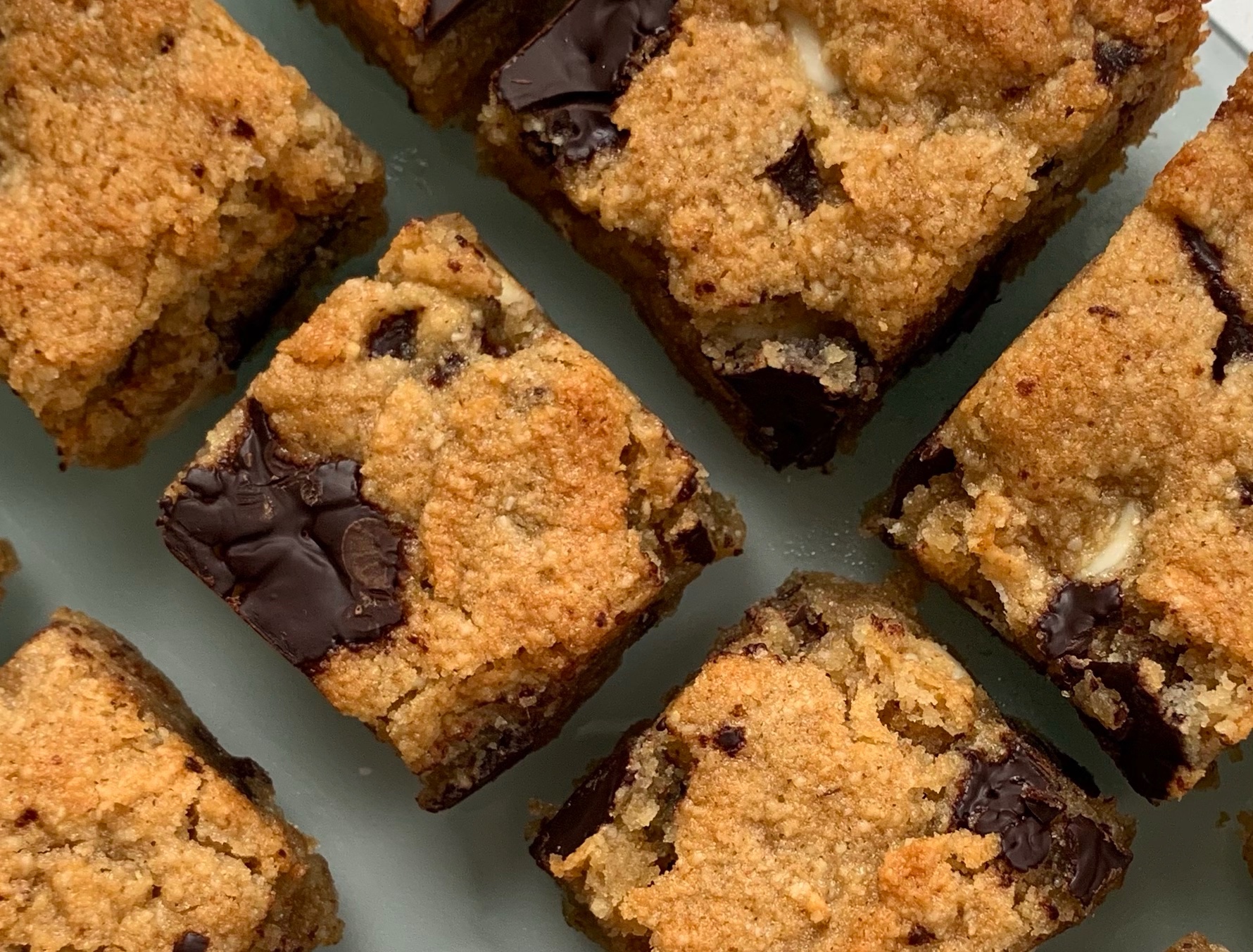 Ingredients: 1 cup almond flour3 tbsp coconut flour1/2 tsp baking soda1/4 tsp salt2/3 cup brown sugar or coconut sugar1/4 cup coconut oil (room temp)1/2 cup cashew butter1 egg & 1 yolk2 tbsp maple syrup1 tap vanilla extract1/3 cup chopped roasted cashews1/3 cup white chocolate chips To Make: Preheat oven to 350F and prep a baking…